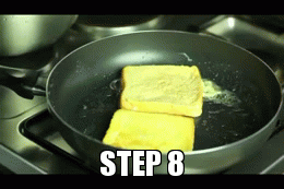 Set the stove or electric pan to medium high heat. Place the pan over the burner if cooking over the stove. Add non-stick spray, olive oil or butter so that the bread will not stick to the pan. For additional support, watch the video.